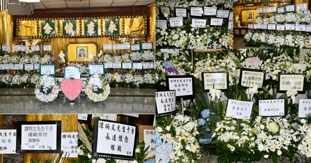 龙贯天、罗艳卿、陈宝珠、李香琴、罗家英汪明荃、古天乐、郑少秋、姜皓文夫妇、钱嘉乐夫妇、杜琪峯夫妇,纷纷给谭炳文送上花牌,悼念这位演艺圈前辈。